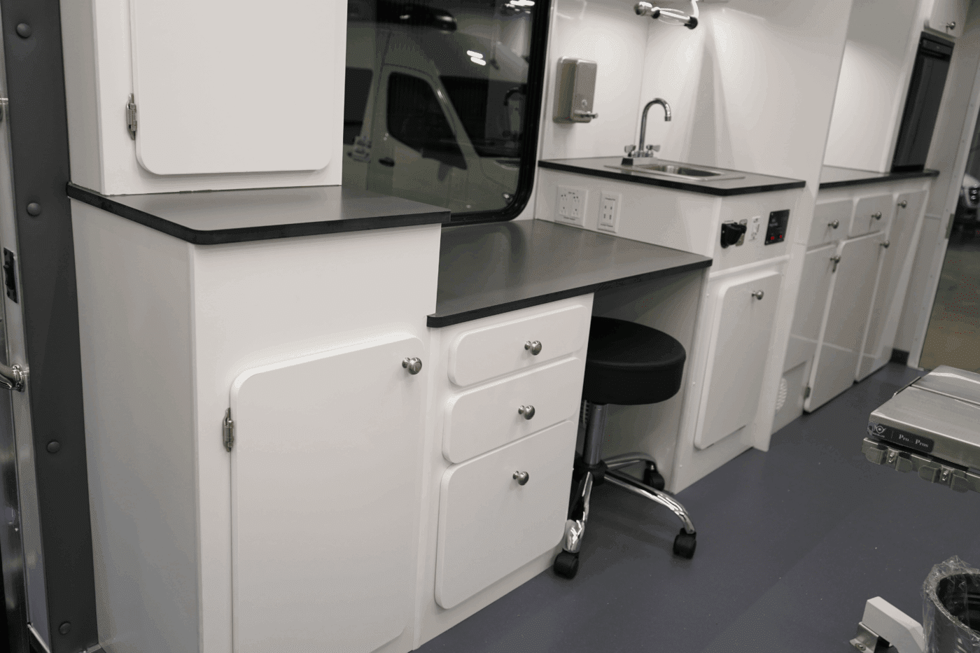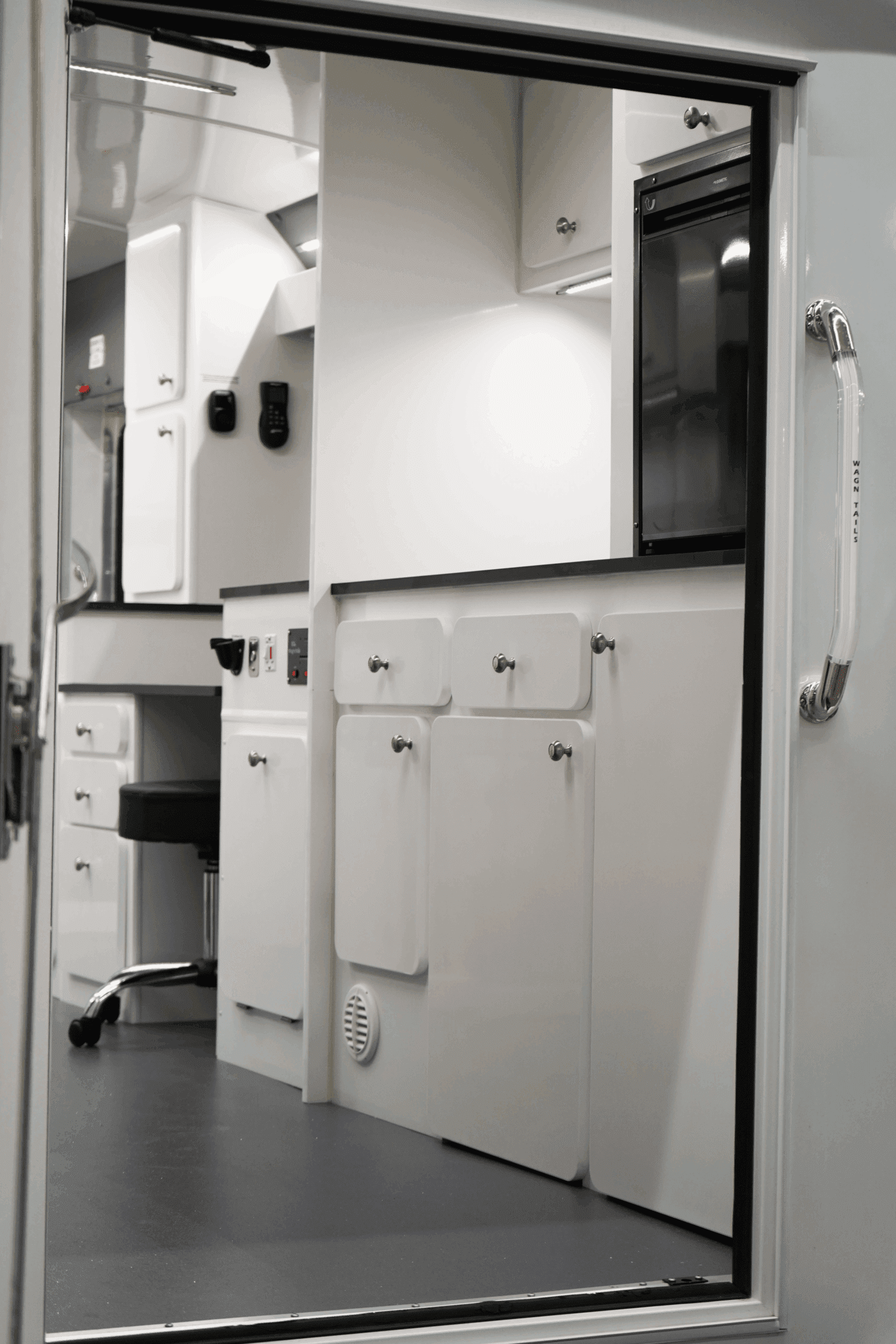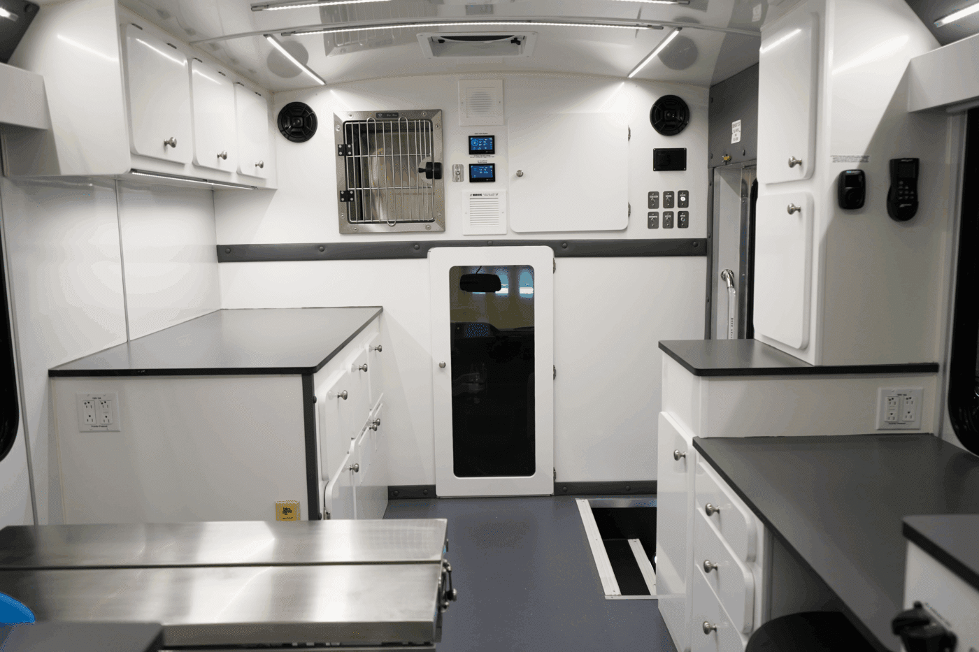 - 12V Access Lights — In the cab, entry stairwell and clinic provide auxiliary illumination.