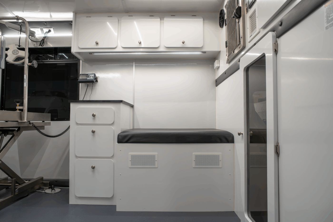 - 12V Access Lights — In the cab, entry stairwell and clinic provide auxiliary illumination.